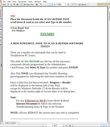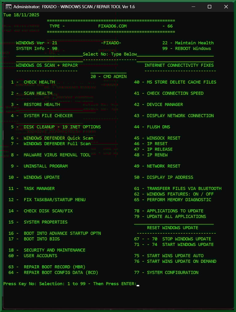 FIXADO - Scan/Repair Command Prompt Tool is easy to use by selecting the number to address and fix an issue with your PC.